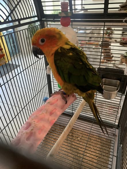 Many buyers searching internationally for a sun conure for sale prioritise colour uniqueness, temperament, and early training exposure. The pineapple mutation positions Aurielle in a higher value bracket due to: