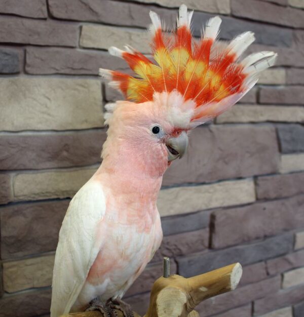 This radiant 10.8-month-old juvenile female Major Mitchell’s Cockatoo displays brilliant sunset crest colors, soft pink plumage, and exceptional emotional intelligence. Lumea is affectionate, expressive, and ideal for families seeking a gentle, rare major mitchell cockatoo juvenile female companion raised with specialized care.