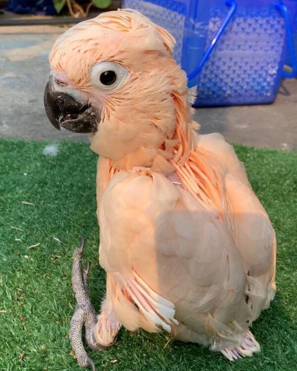 Be the first to review “Sweet Baby Moluccan Cockatoo – 3.9-Month Male With Fluffy Peach Down & Bright Emerging Crest”